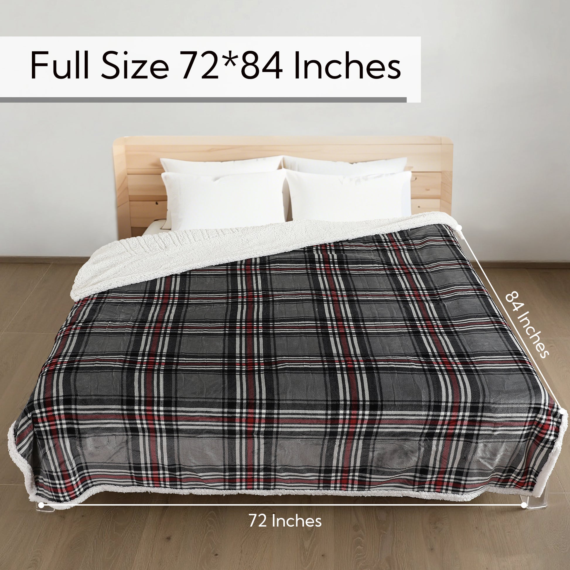 SUNNY HEAT Electric Heated Blanket 72"x84" Full Size, 10 Heating Levels & 12 H Auto Shut Off, Cotton & Microplush Plaid, Gray & Red