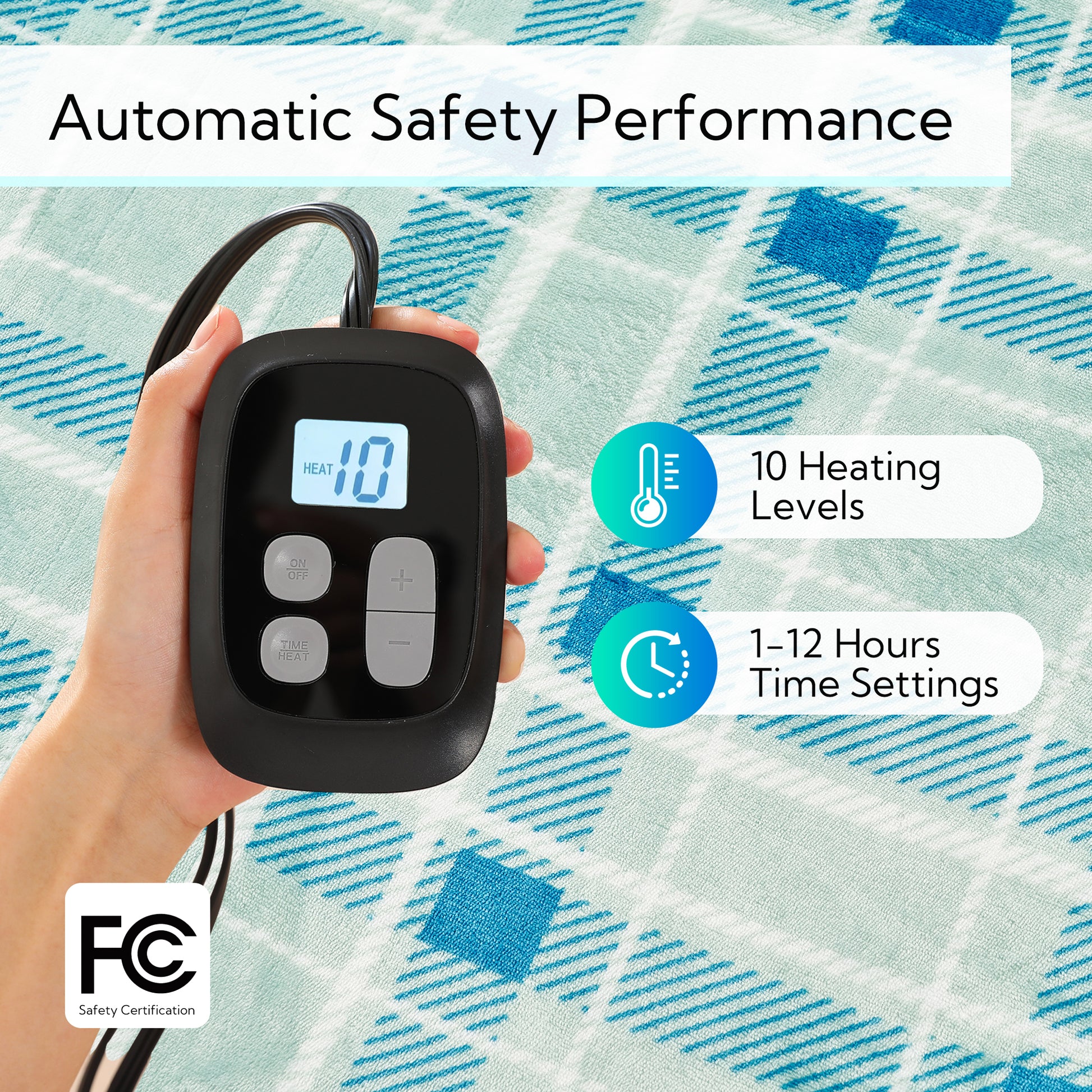 SUNNY HEAT Electric Heated Blanket 72"x84" Full Size, 10 Heating Levels & 12 H Auto Shut Off, Cotton & Microplush Plaid, Green