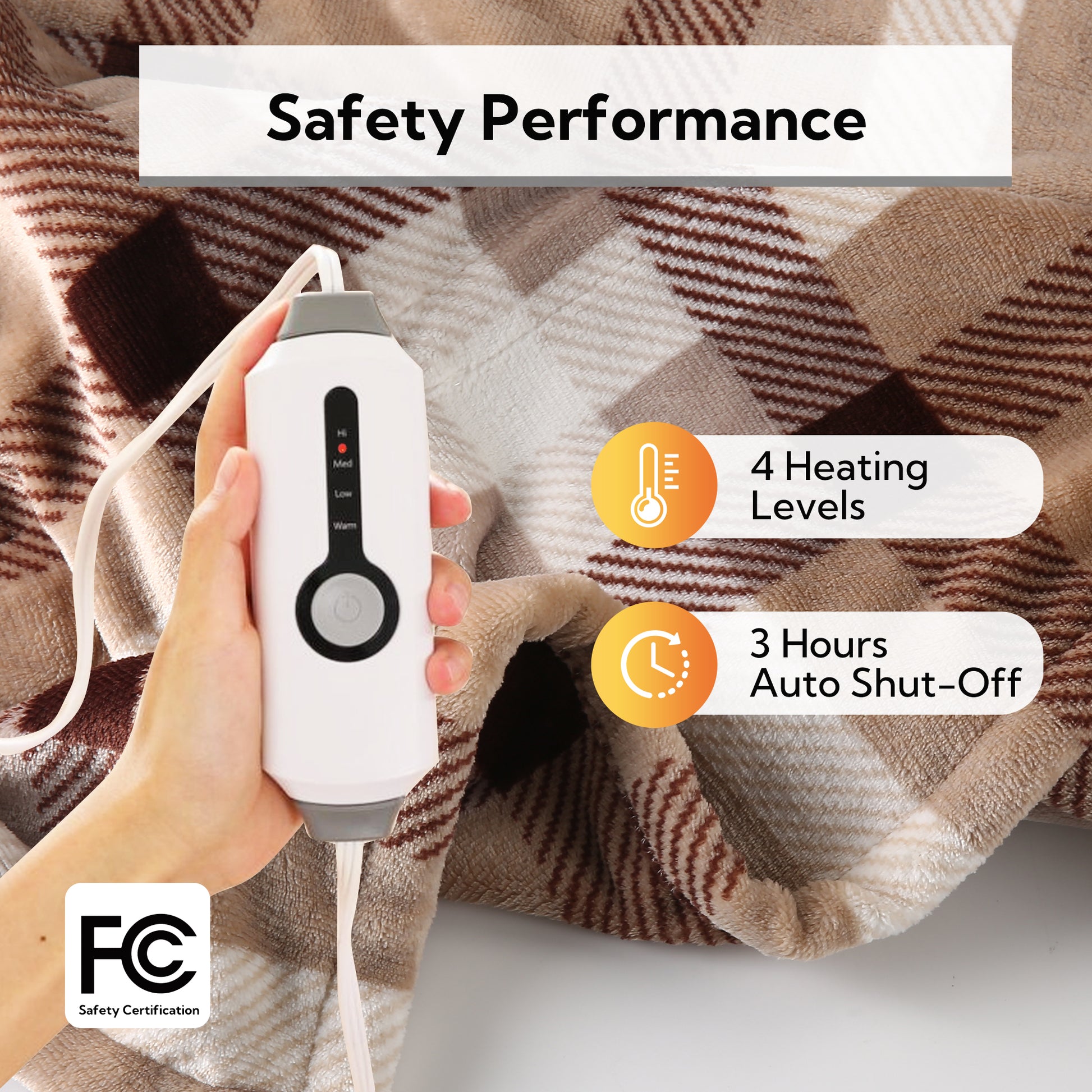 SUNNY HEAT Electric Heated Blanket Flannel Throw size 50''x60'' Warm Machine Washable- Red & Brown Plaid