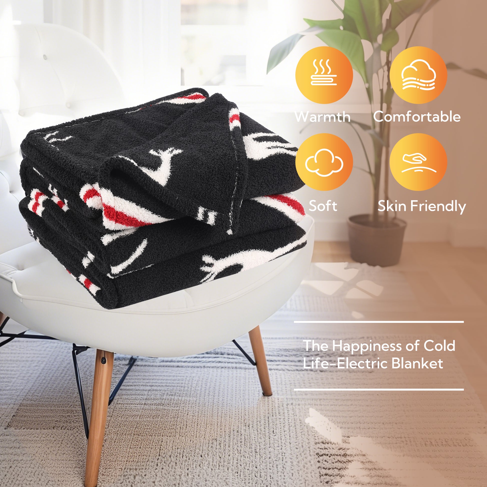 SUNNY HEAT Electric Heated Blanket Full size 72''x84'' Warm Machine Washable- black and white
