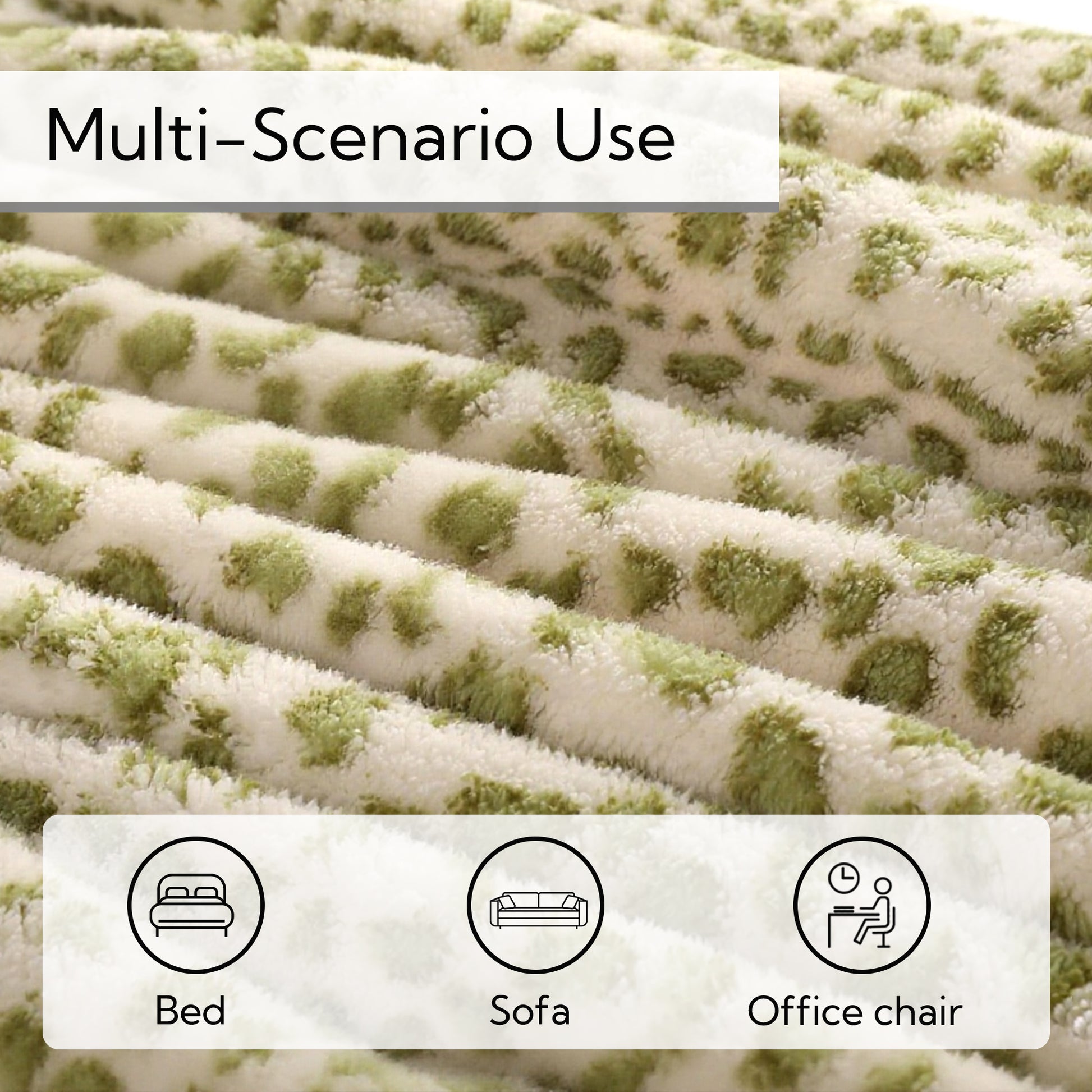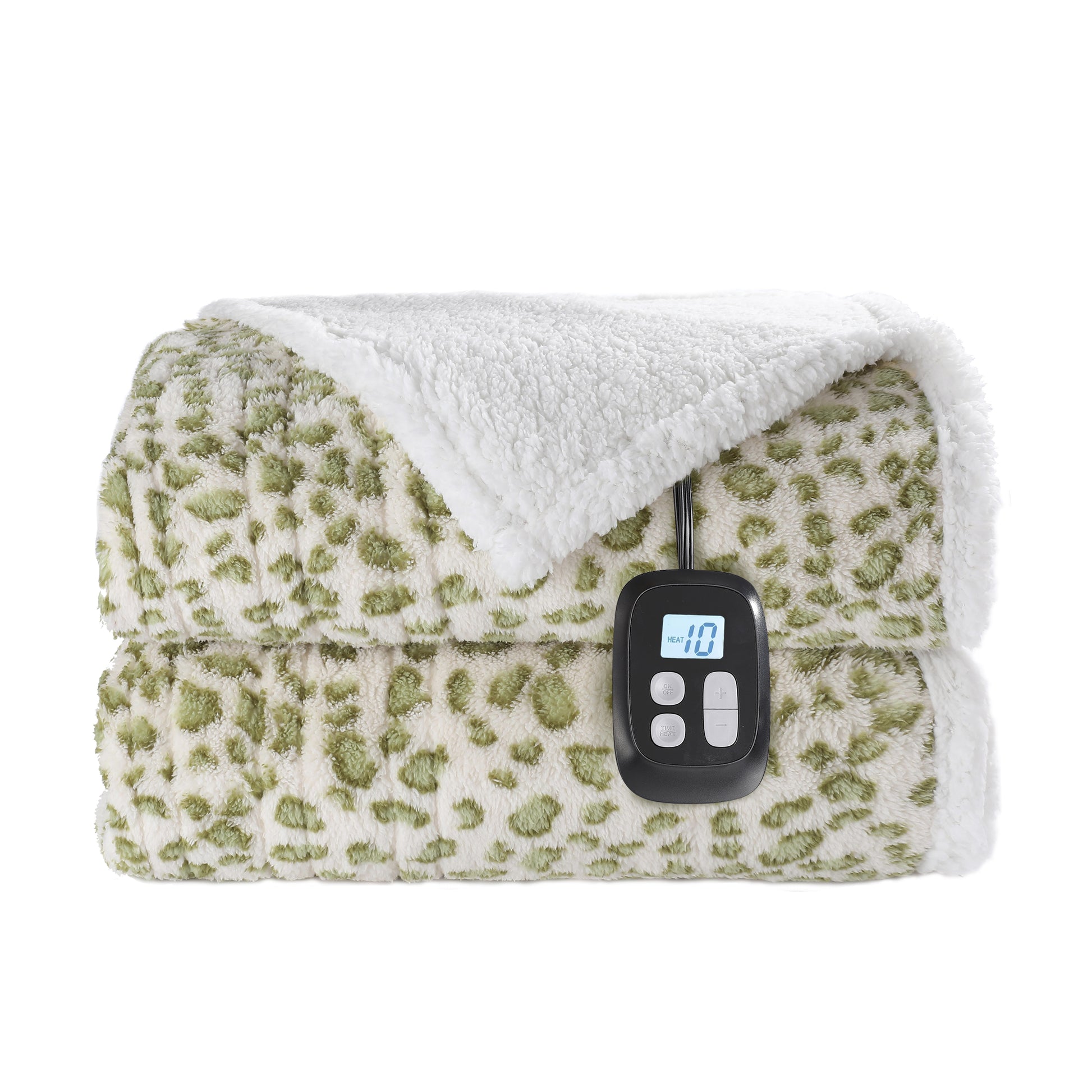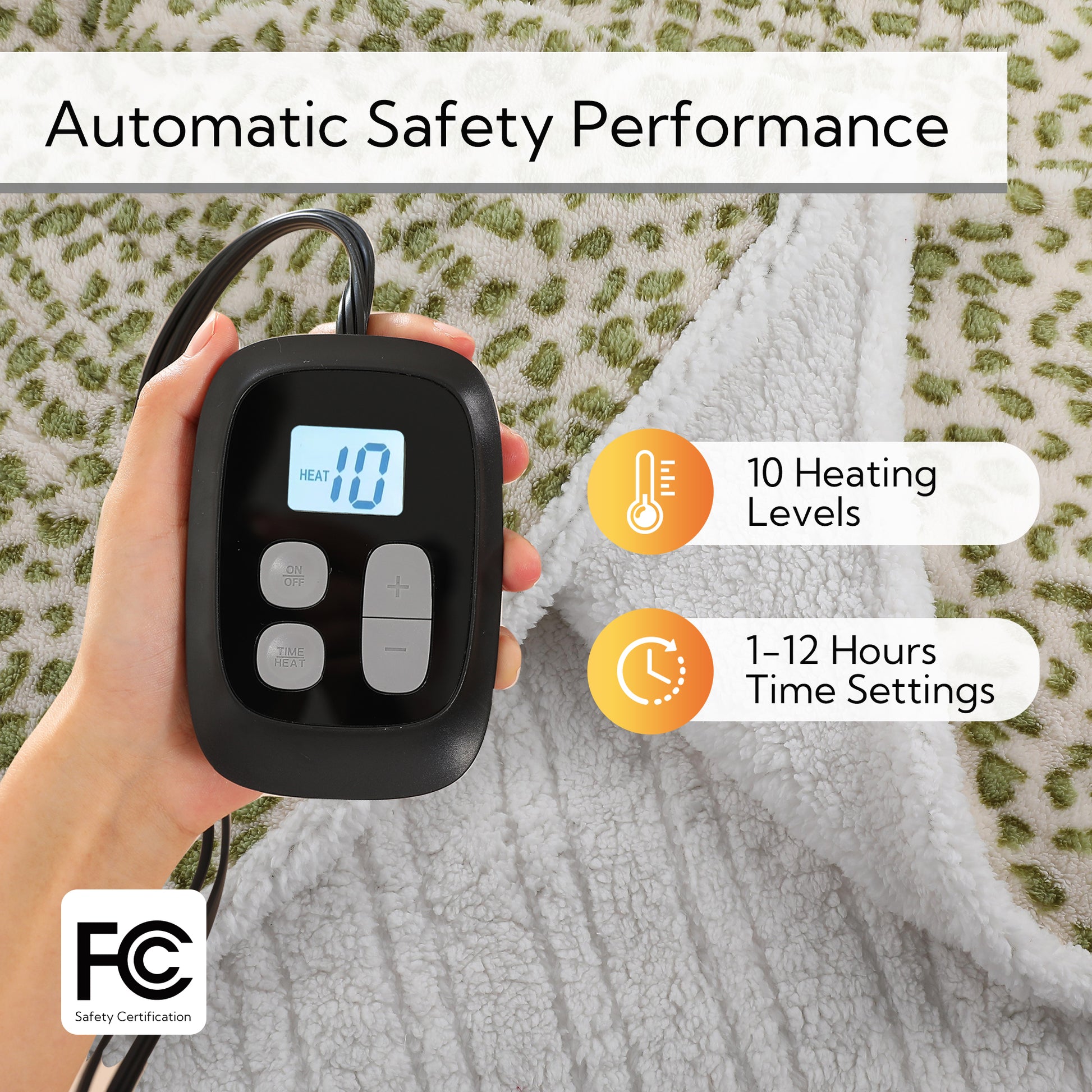 SUNNY HEAT Heated Electric Blanket Full Size 72'' x 84'' 6 Heating Levels & 1-10 Hours Auto Off , Leopard Green & White