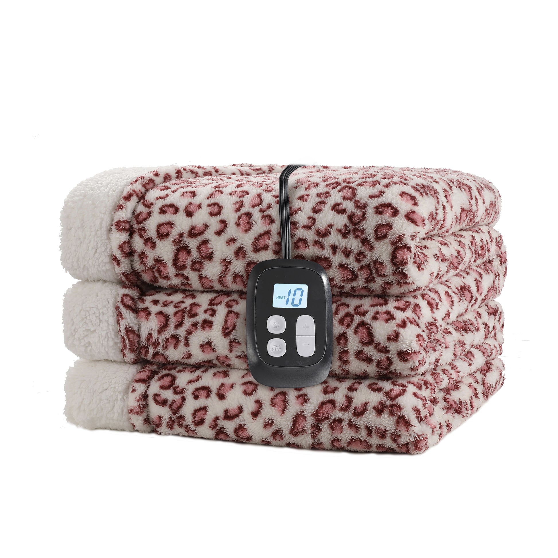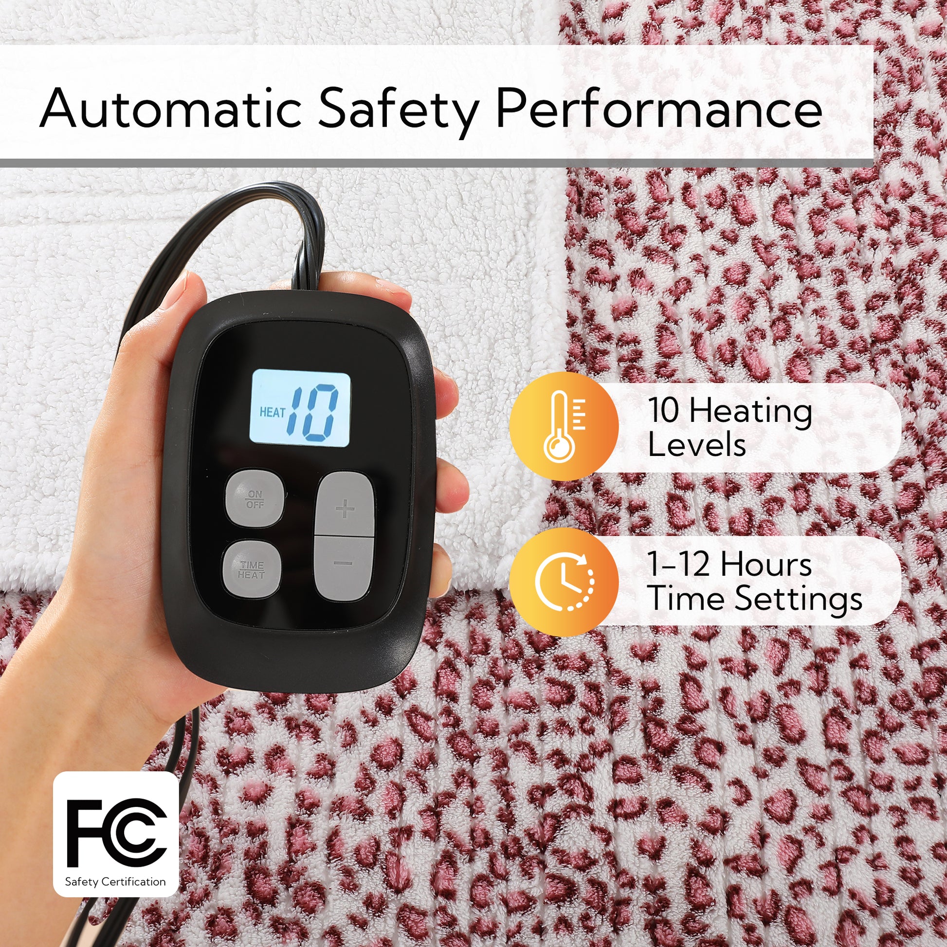 SUNNY HEAT Heated Electric Blanket Full Size 72' 'x 84'' 6 Heating Levels & 1-10 Hours Auto Off , Leopard Pink & White