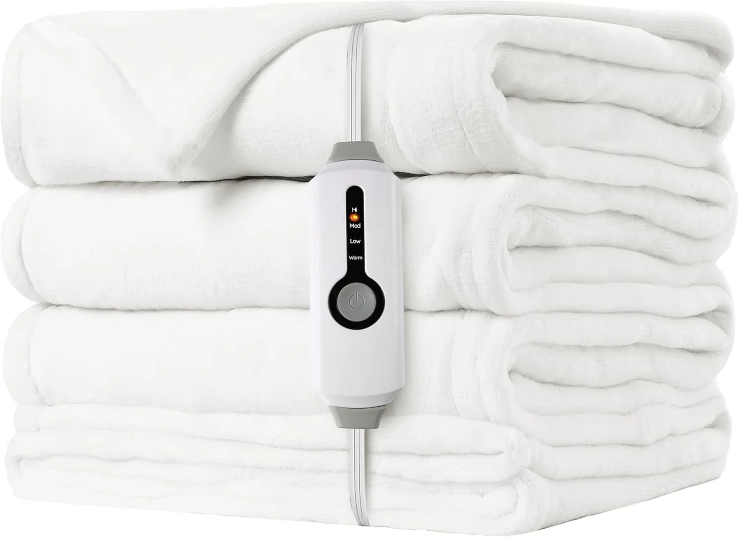 SUNNY HEAT Heated Electric Blanket Full Size 72"x84" - Blanket with 4 Heating Levels & 10 Auto Off - Winter Comfortable Relaxation Heated Blanket for office & Bedding, White