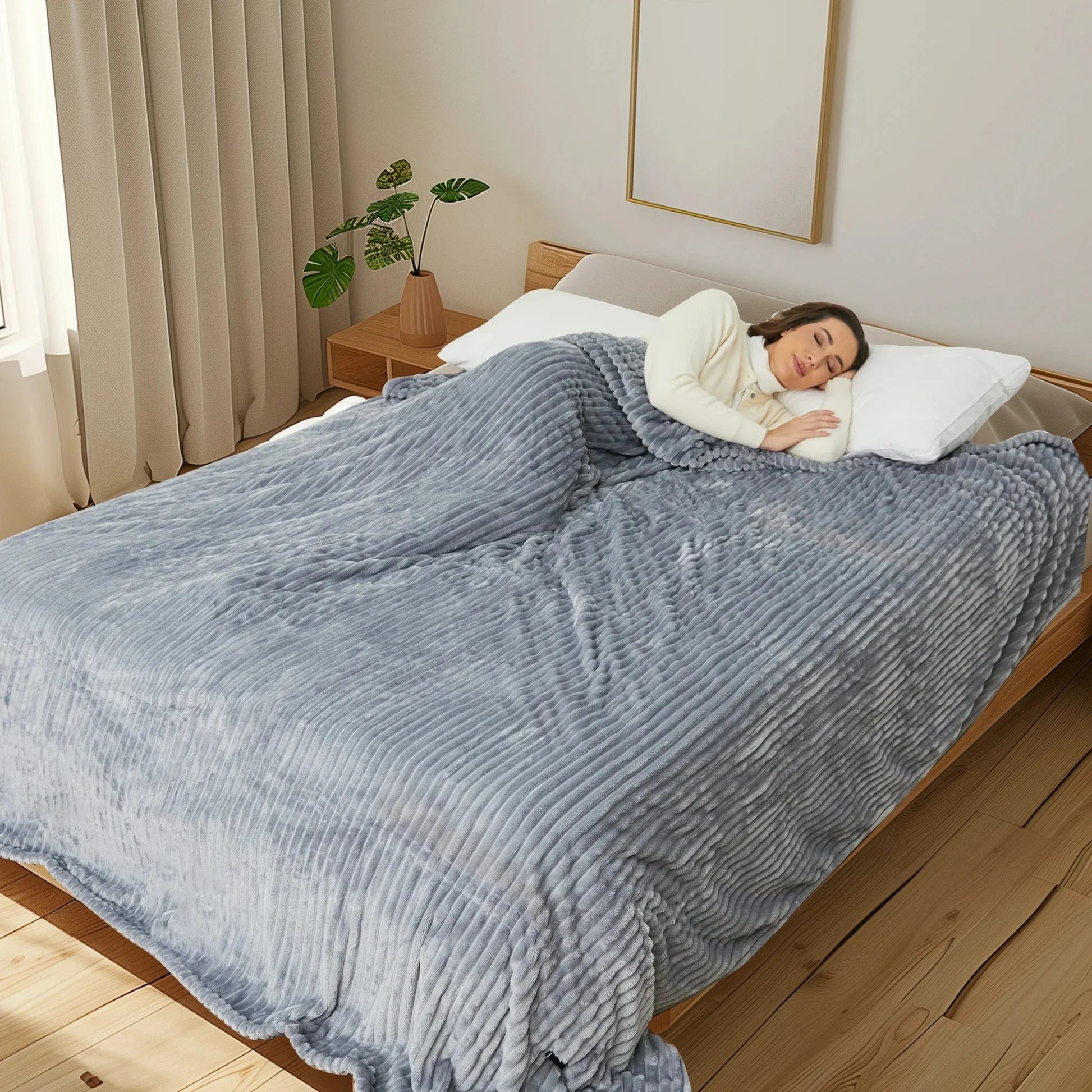 - 【Soft Flannel Material】Made from ribbed fleece, the SUNNY HEAT Electric Heated Blanket is exceptionally soft and plush. Wrap yourself in its comforting embrace and feel the stress melt away as the therapeutic warmth soothes your body and relaxes your mind.
